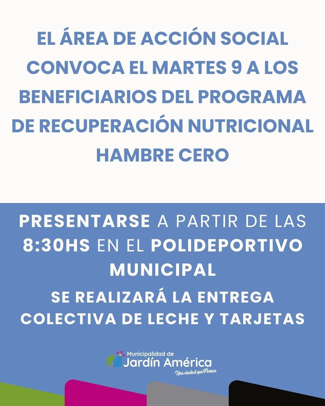 Se realizará la entrega colectiva de leche y tarjetas.