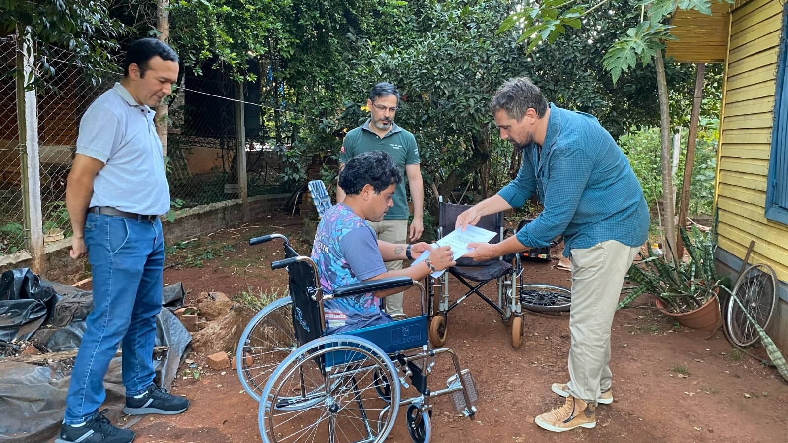 Junto al Director de la Zona Centro Paraná, Bioing. Hugo Araujo, y el Jefe del Área Programática VIII, Lic. Cristian Sánchez, realizamos la entrega de una silla de ruedas gestionada a través del Área de Discapacidad de la Municipalidad de Jardín América, a cargo del Sr. Walter Suárez, ante el Ministerio de Salud Pública de Misiones